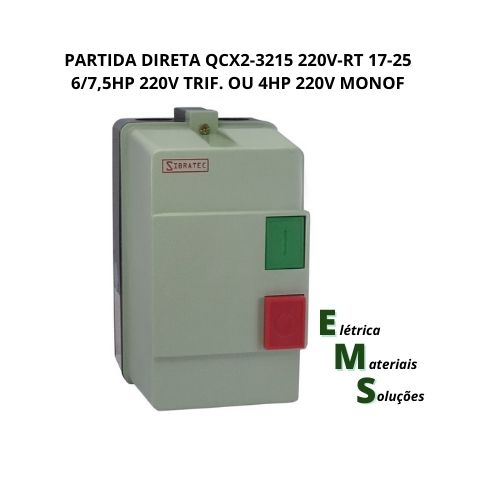 PARTIDA DIRETA QCX2-3215 - SIBRATEC >BOBINA: 220VCA >RELÉ TERMICO: 17 - 25A >CONTATOR: 32A >5 HP: 220V TRIFÁSICO OU >4 HP: 220V MONOFÁSICO
