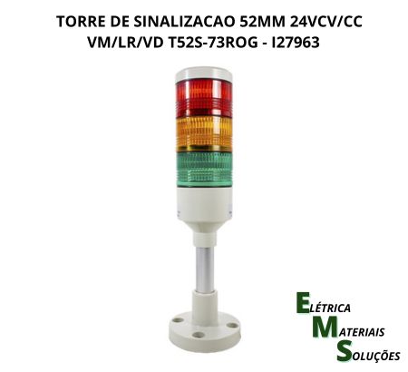 Sinalizador torre com luz de LED, 52mm, com luz contínua ou pulsante e haste com base para fixação.